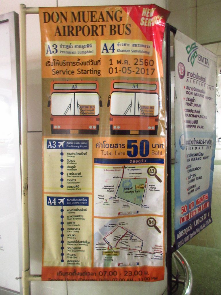 ドンムアンエアポートバスはA1からA4までの四つのバスが運行しています。