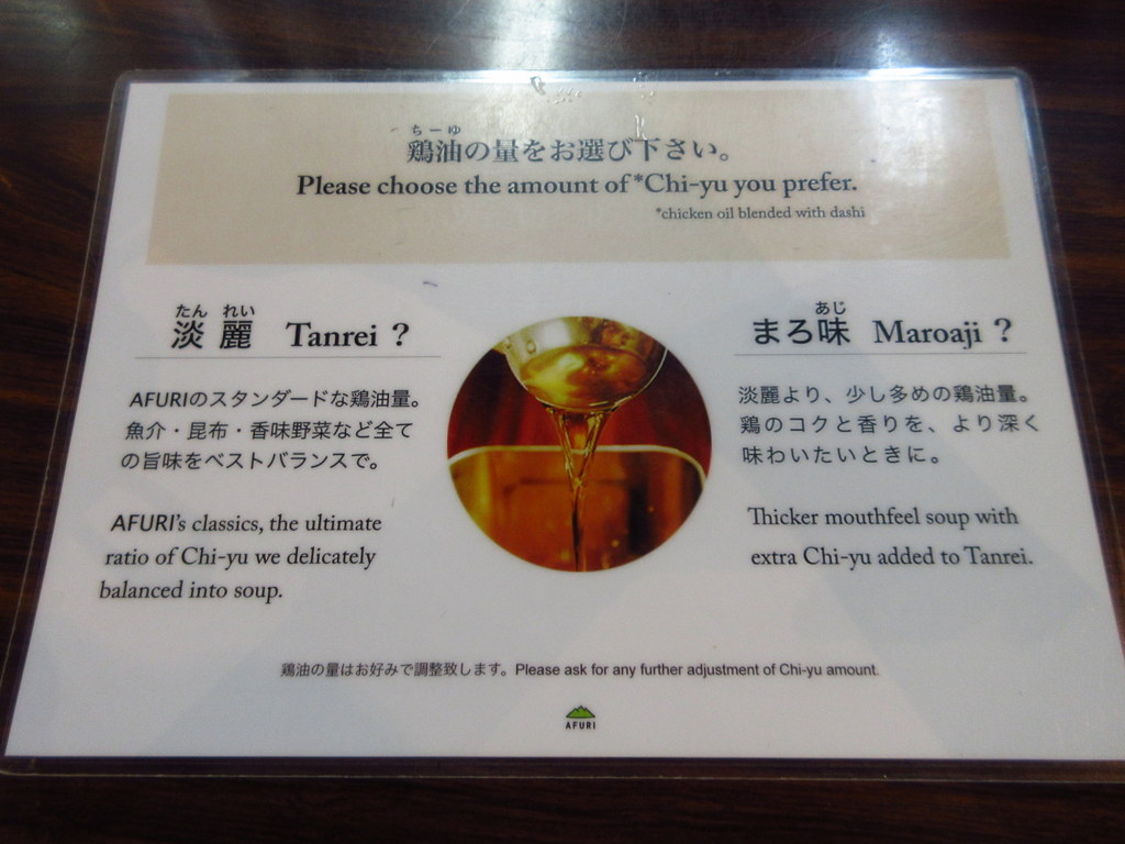 スープに入れる鶏油(ちーゆ)の量を選ぶことができて
