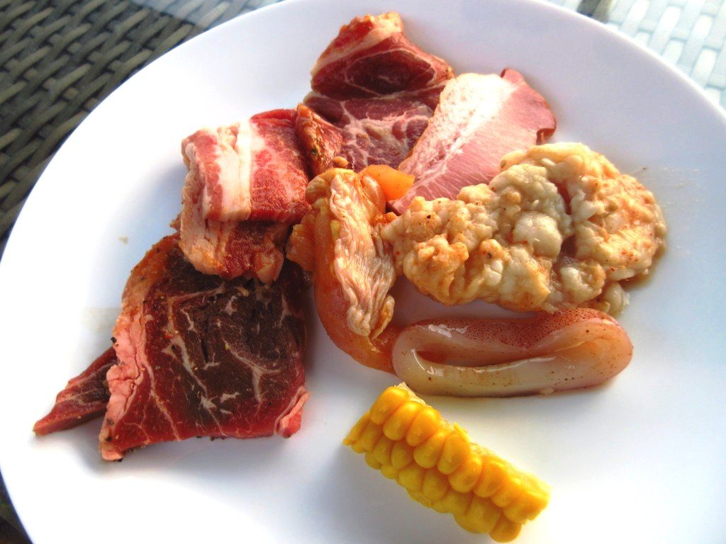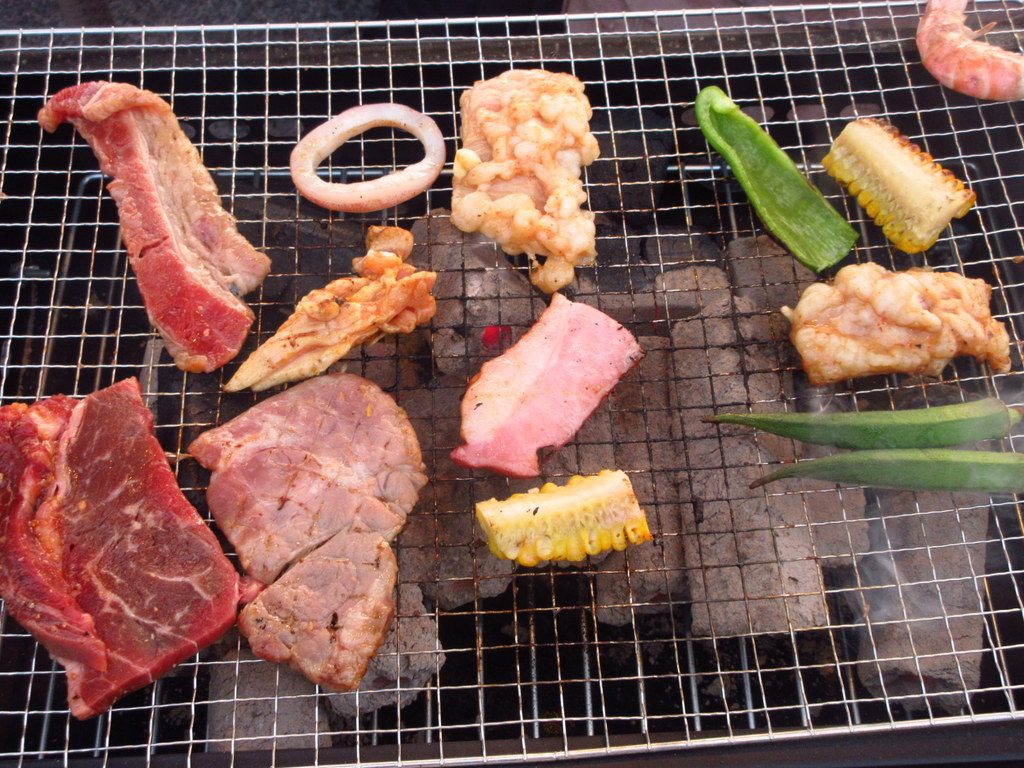 メインのバーベキューでは牛肉カルビ、豚肉や鶏肉などのお肉や、