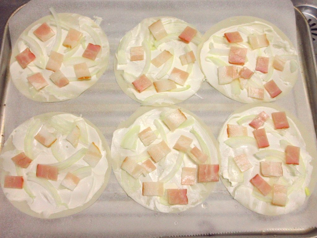 一口サイズでパーティーメニューにも使えそうなフラムクーヘン。