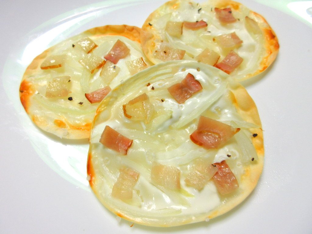 餃子の皮で簡単!フラムクーヘンのレシピ。