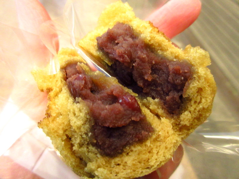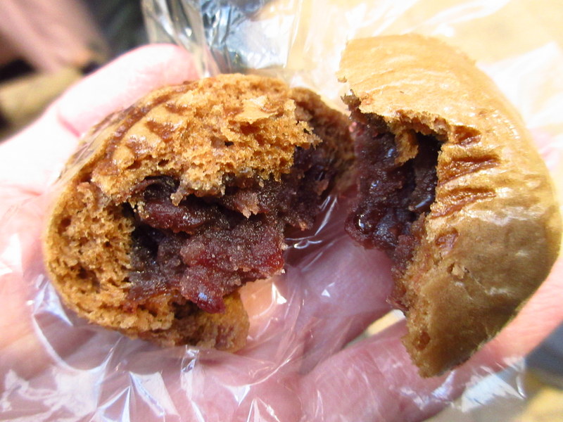 こちらは、泉屋の薄皮まんじゅうとは対照的に、[su_highlight background=”#faf146″]皮がとってもぶ厚い[/su_highlight]です。皮の味を楽しみたい方には良いかもしれませんが、