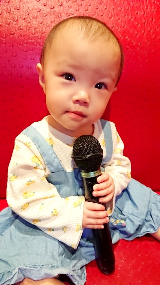 赤ちゃんは初のカラオケでマイクに興味津々!!