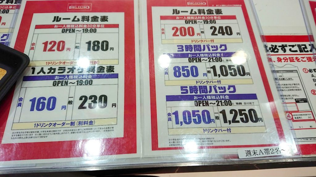 ちなみにビッグエコー武蔵新城店に行ったのは土曜日の夜の時間帯だったので