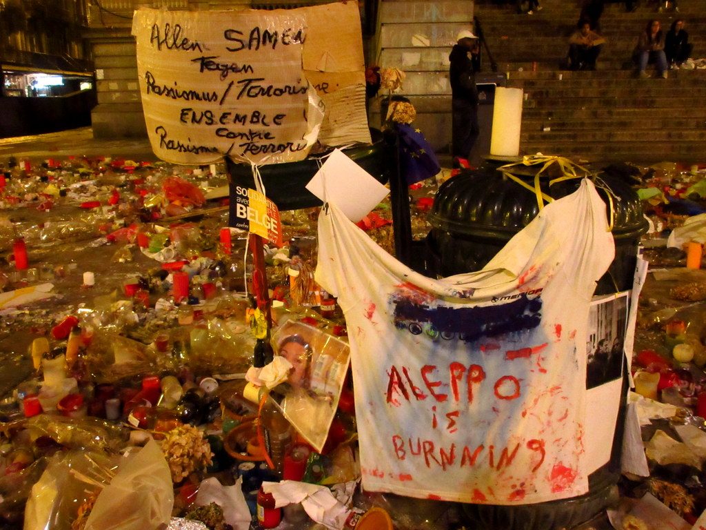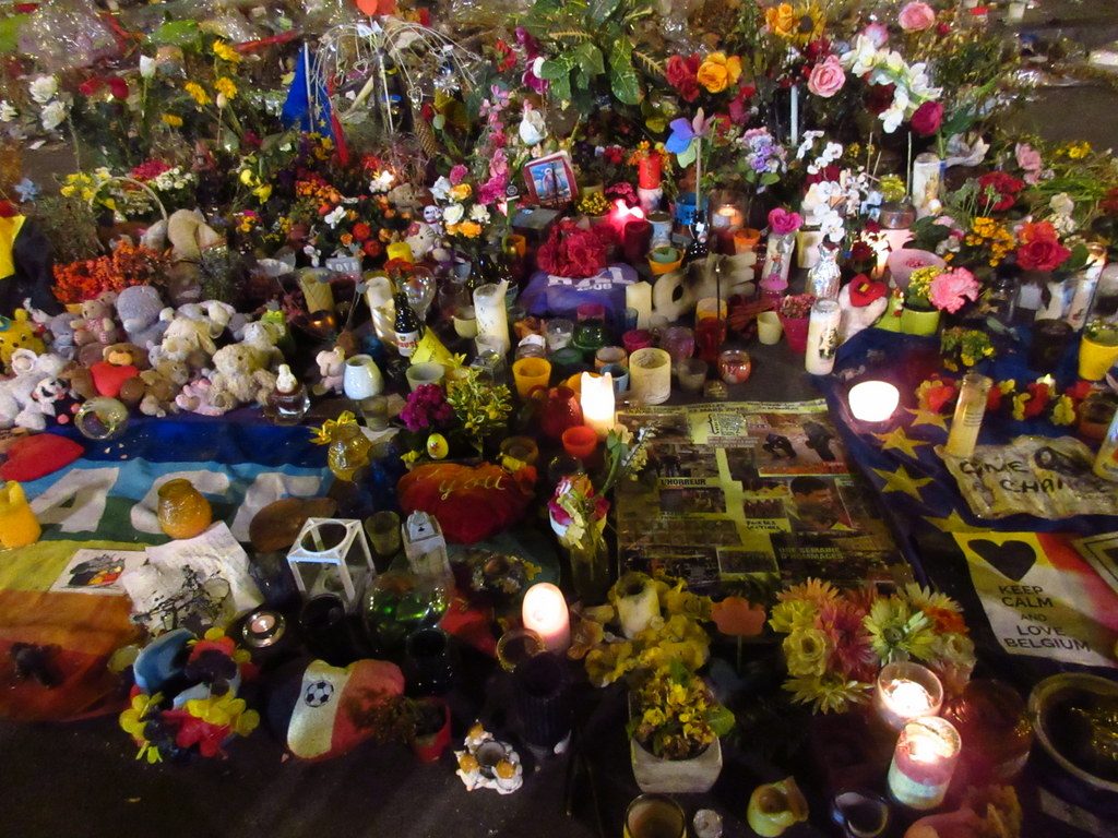 夜、中心地の広場には、たくさんのキャンドルや花束や写真、悲痛なメッセージが…