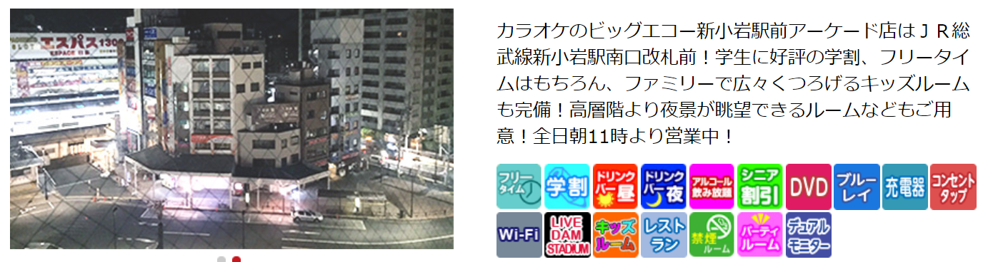 - 1.2 カラオケ ビッグエコー新小岩駅前アーケード店
