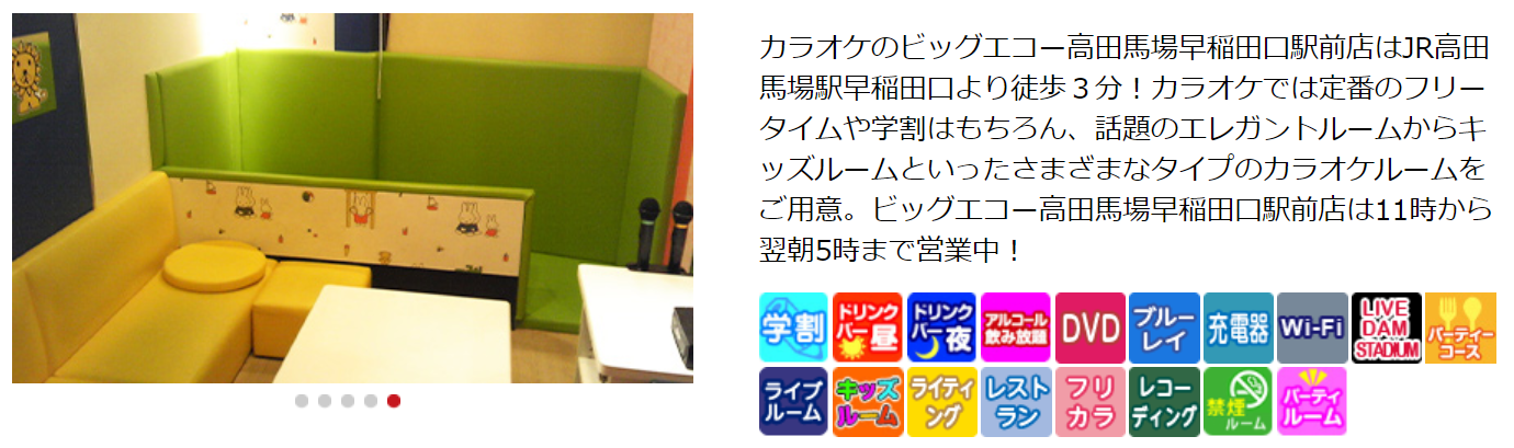 - 1.5 カラオケ ビッグエコー高田馬場早稲田口駅前店