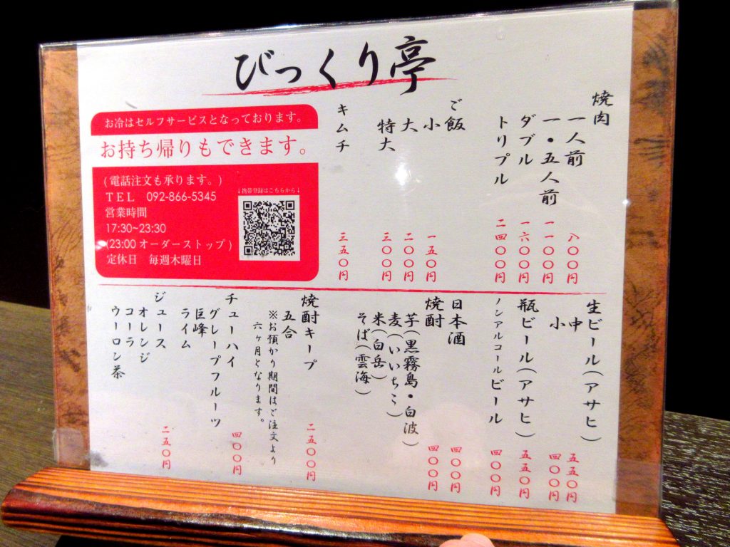 メニューが「焼肉(びっくり焼き)」の1種類しかないことです。
