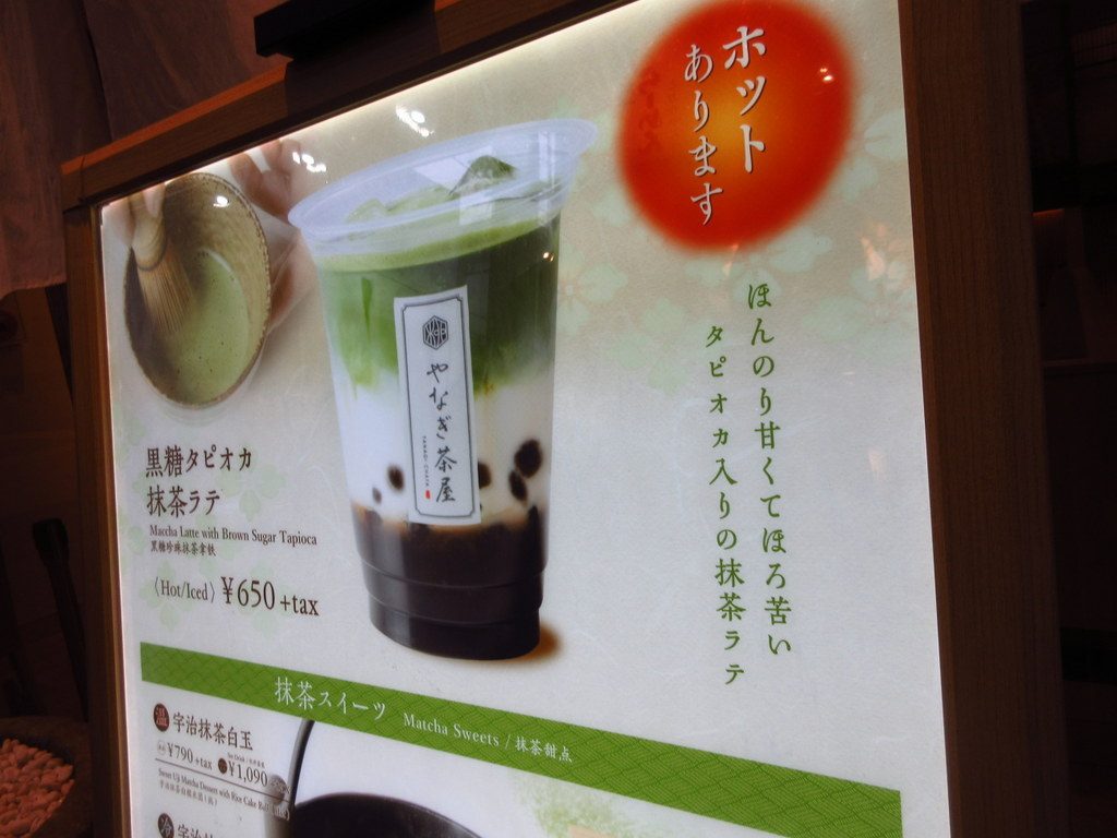 やなぎ茶屋の黒糖タピオカ抹茶ラテ