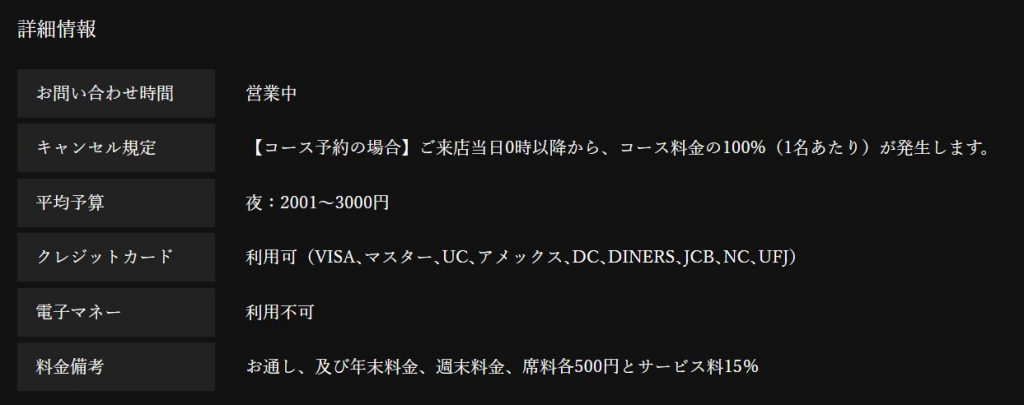 ホットペッパーにも、一応書いてあります。(一番下の行に。)