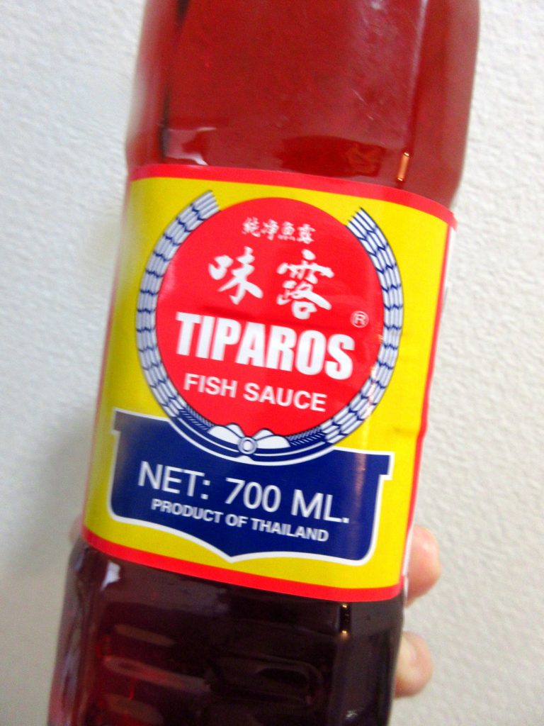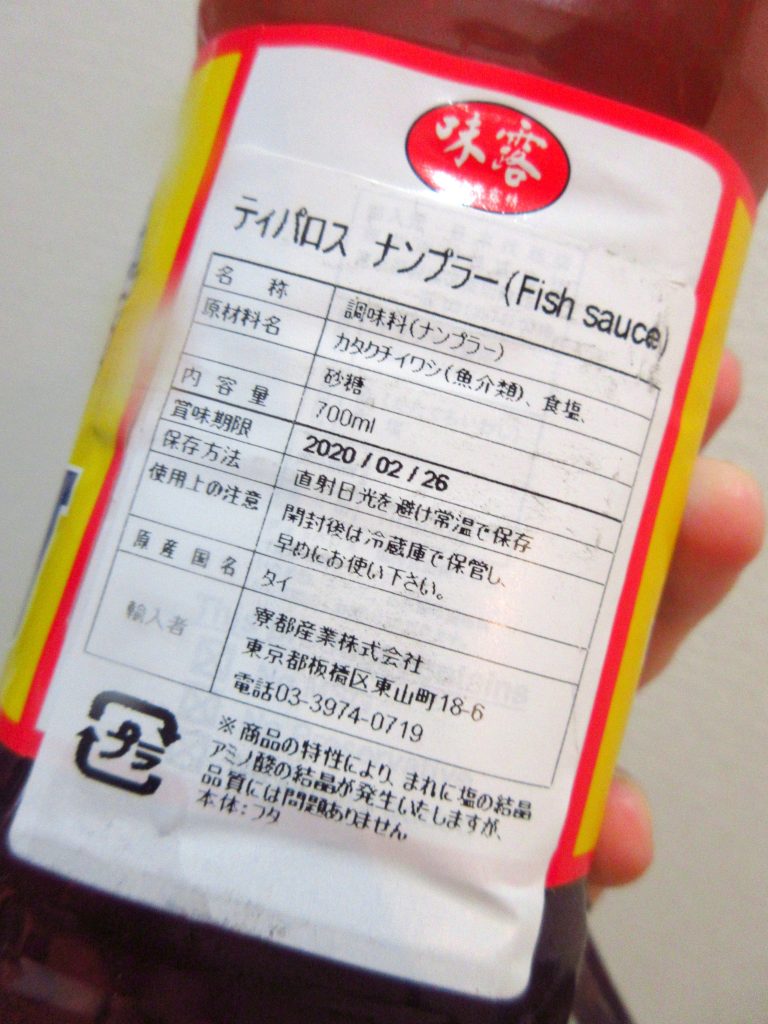 また、ナンプラーは、近所のハナマサでゲットしたティパロスのナンプラーを使用しました。