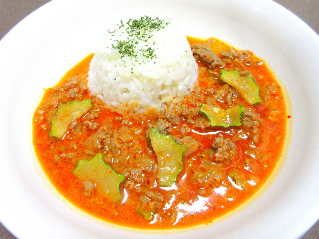 ②さらにズッキーニを入れ炒めたら、レッドカレーペーストを入れ、