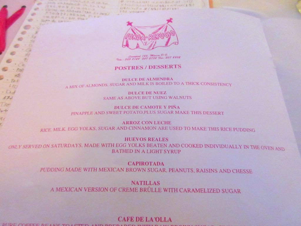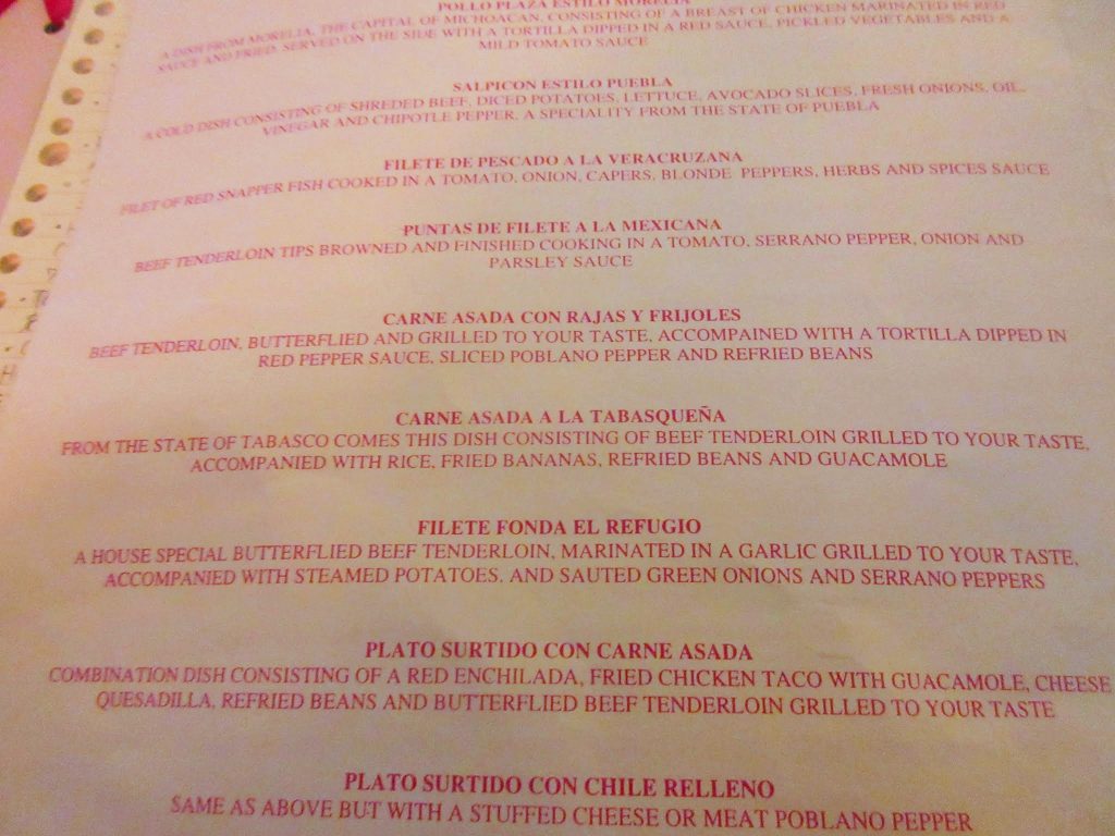 メニューチェック。伝統的なメキシコ料理が色々ありました。