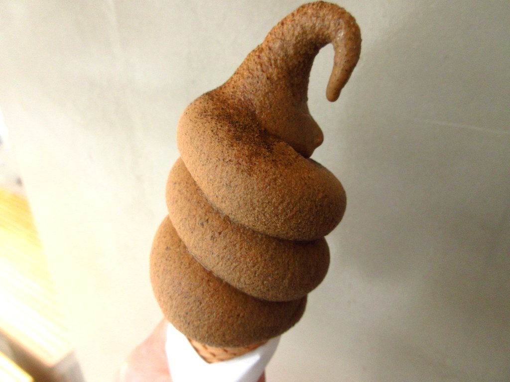 よくよく調べてみるとこの形のソフトクリームは、数年前に韓国で大流行したとのことで、日本でも最近話題になっているようです。