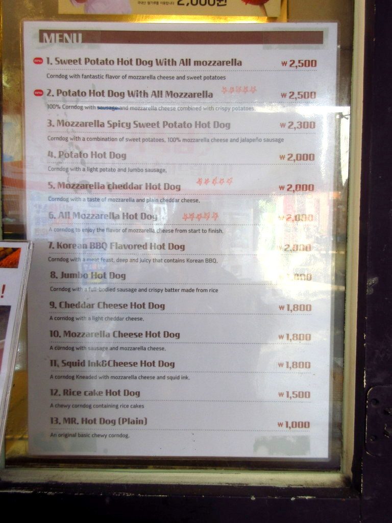 ここはチーズハットグや普通のホットドッグの専門店で、様々な種類が置いてありました。