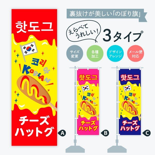 今からチーズハットグを販売したい方などはのぼり旗を立てると良いですよね。ネットならのぼりもリーズナブルなお値段で購入することができます。