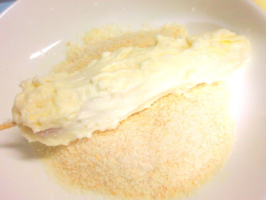 そして、このさけるチーズの周りにさらにチーズ感をアップさせるために