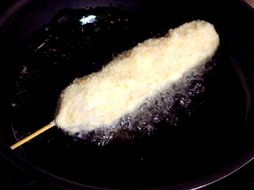 後はこれを油でこんがりするまで揚げれば完成です!!