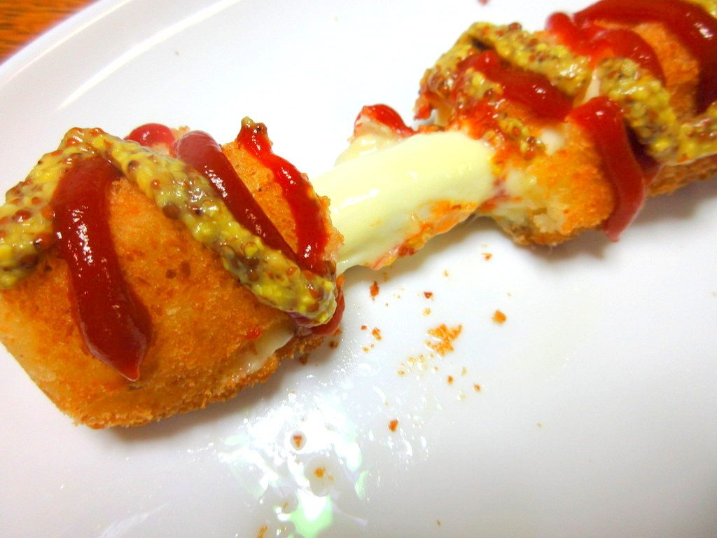熱々のチーズハットグは一口食べるとチーズがびよーんと伸びました!