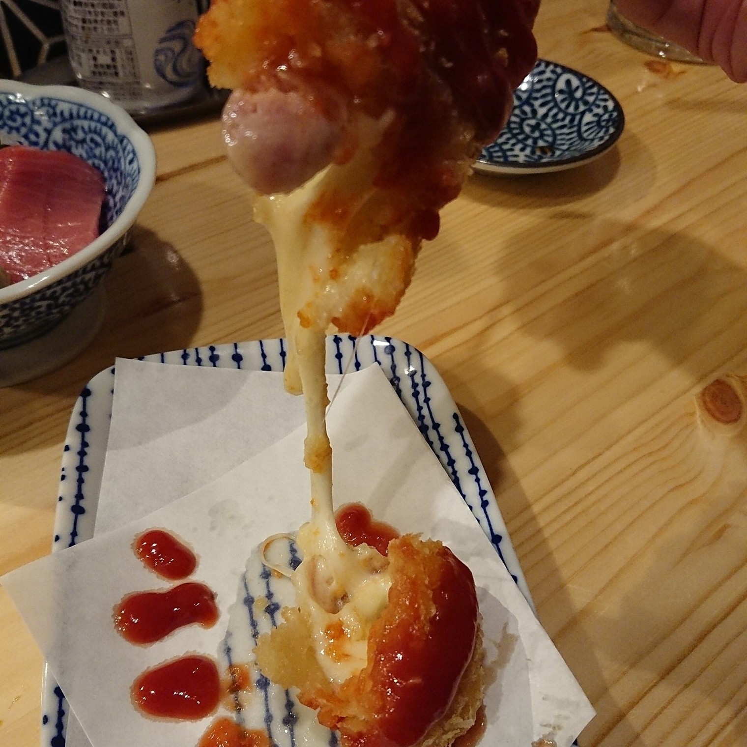 口コミでも「トロ~〜〜リンとチーズ伸びました。」、「ソーセージとチーズに衣付けて串揚げな感じ!」、「賑やかで肉刺しや刺身も美味い」といったように居酒屋としても楽しめるお店でした。