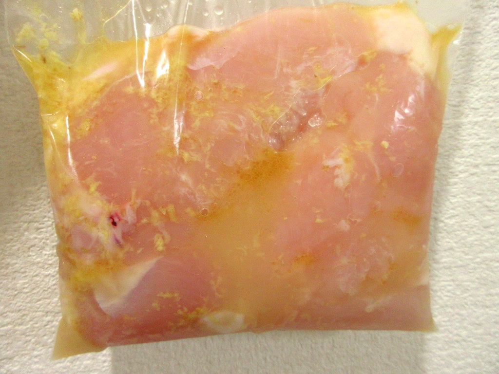 耐熱性のジップロックに入れ、沸騰したお湯の中に入れて10分程度しっかり茹で、