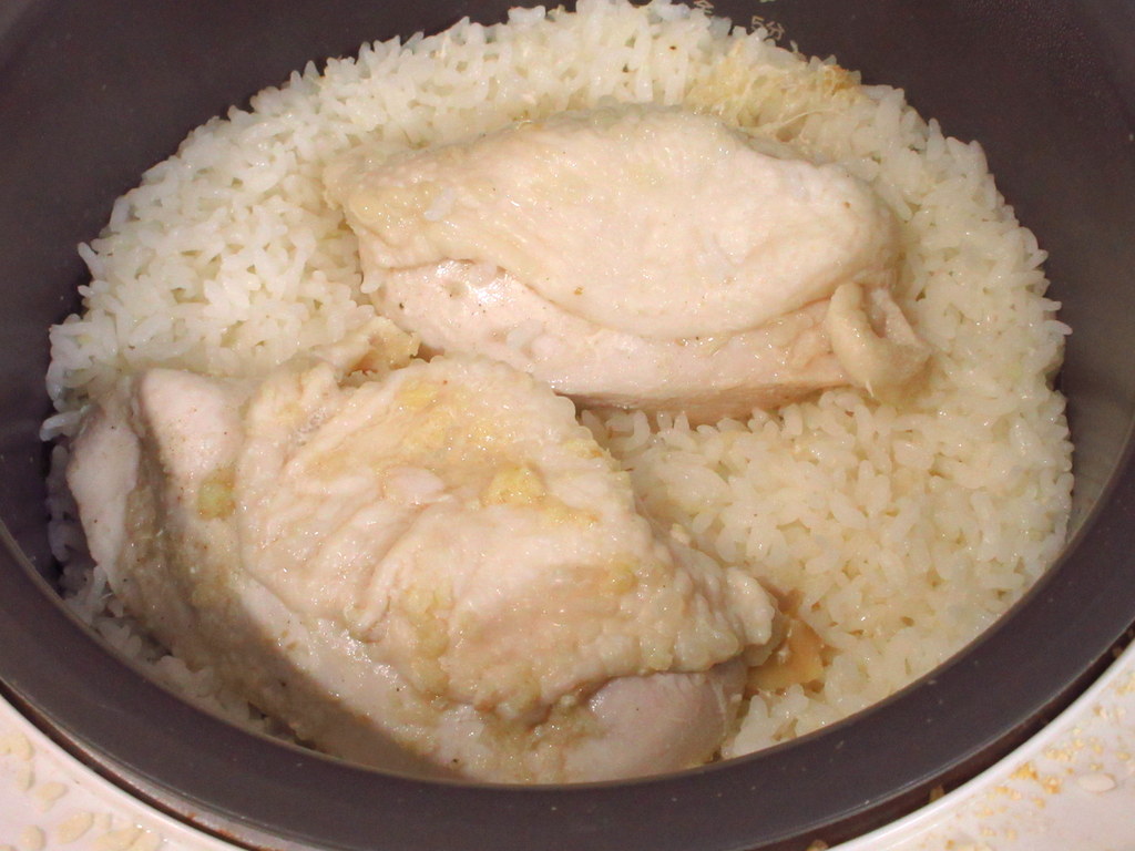 この場合、鶏肉はちょっとパサつきますが、ごはんにも鶏の風味がいきわたるので、これはこれでとても美味しいですよ!