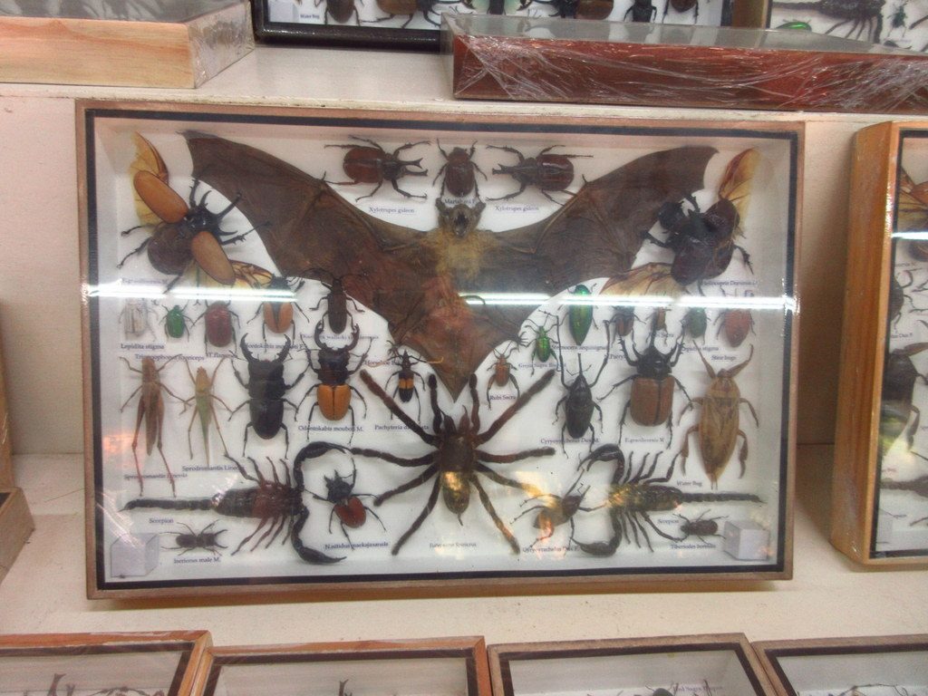 中にはこのような気持ち悪い虫やコウモリの標本まで販売されていました(^_^;)