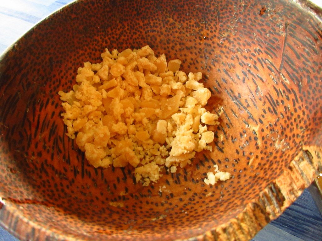 これが冷めると固まり、お菓子のようなココナッツシュガーが完成です(*^_^*)