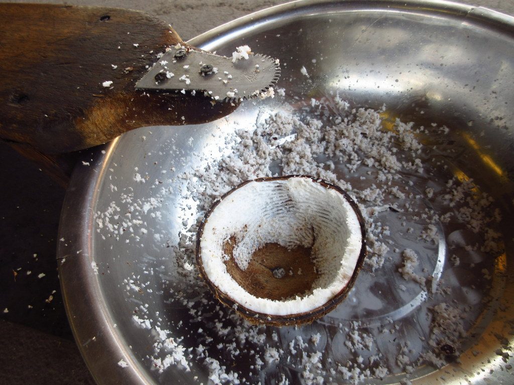 私もスリランカで自分でココナッツの実を削ったことがあるのですが、