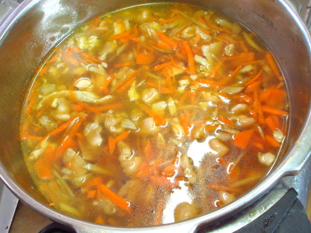 ③鍋に油をしき、①の鶏肉、野菜を炒め、だし汁を入れて調味料Aで軽く煮ます。