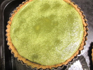 この抹茶ムースの半分を、タルト生地に流し込み、