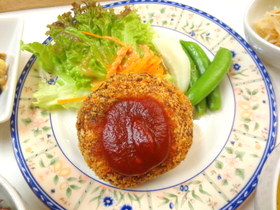 オートミールとレンズ豆のコロッケ、ズッキーニのそぼろあんかけ、