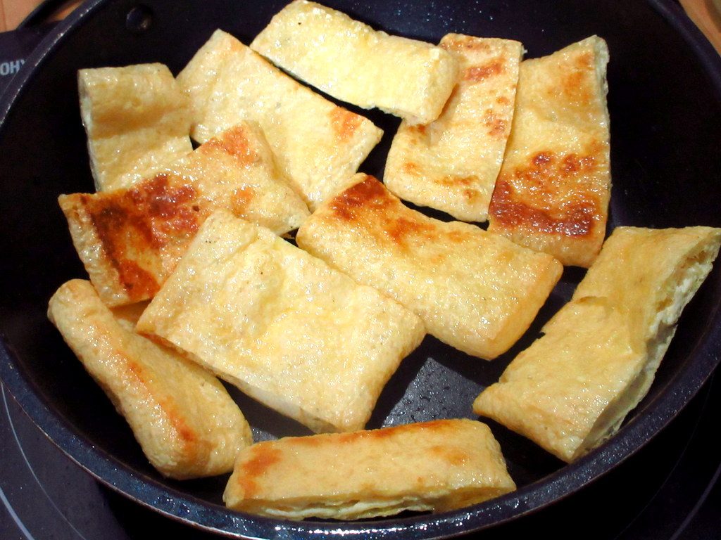 油揚げをフライパンでカリカリになるまでソテーしてみました。