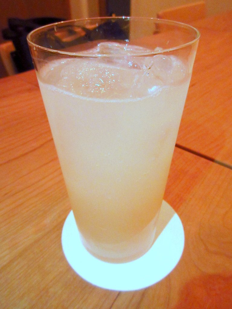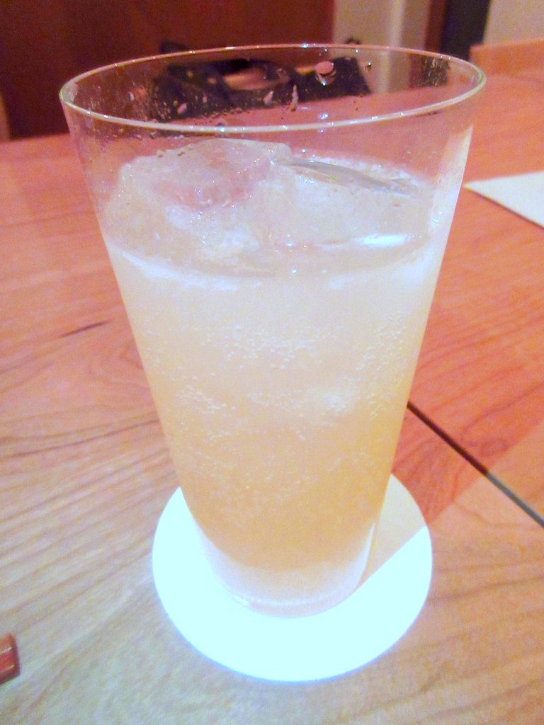 追加ドリンクは、果実酒の桃のソーダ割りです。