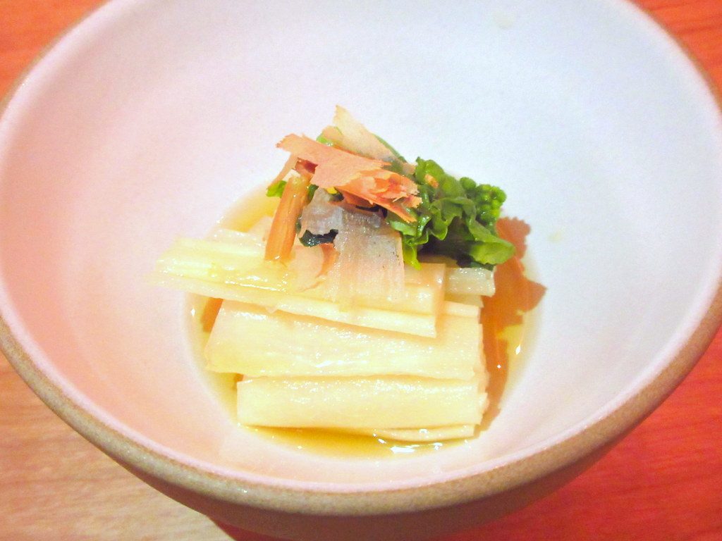 食前酒のように出されたのが鰹節と昆布の一番だし汁。