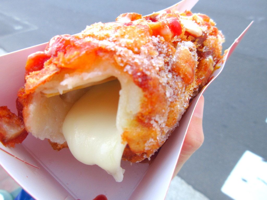 中にはモッツァレラチーズが入っているスタンダードなチーズハットグです。