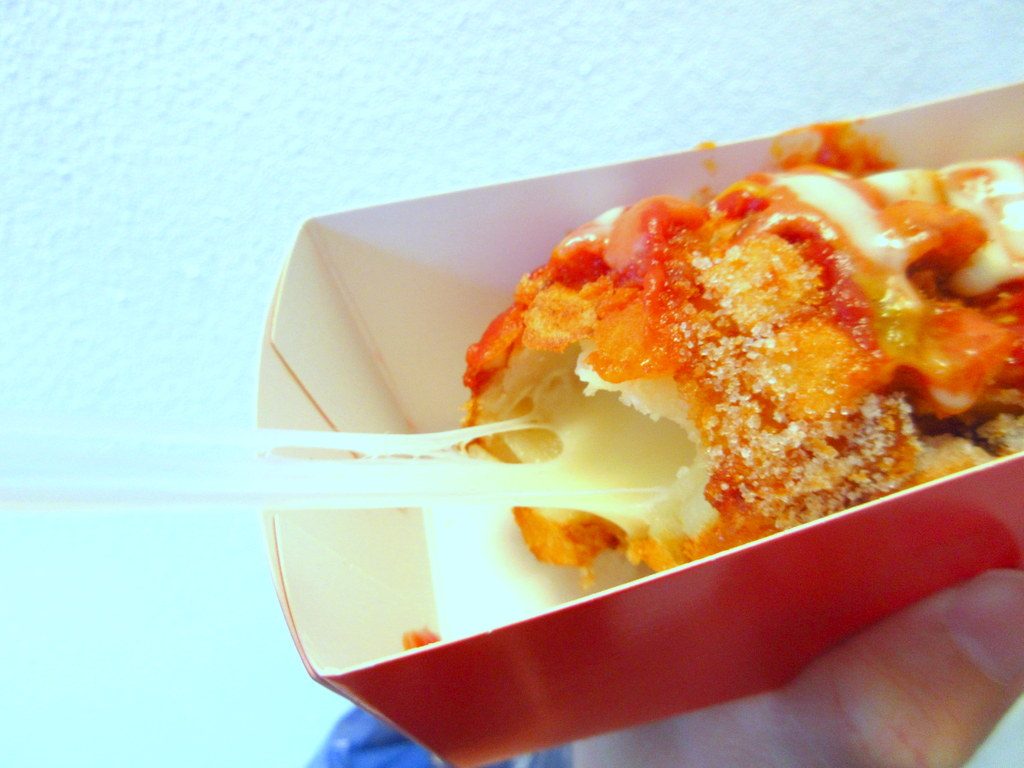 中にはモッツァレラチーズが入っているスタンダードなチーズハットグです。
