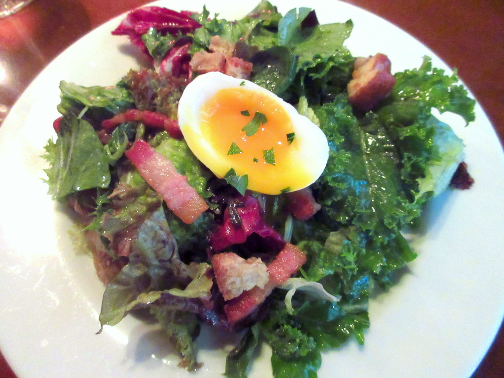 ポーチドエッグと砂肝のコンフィで味付けされています。