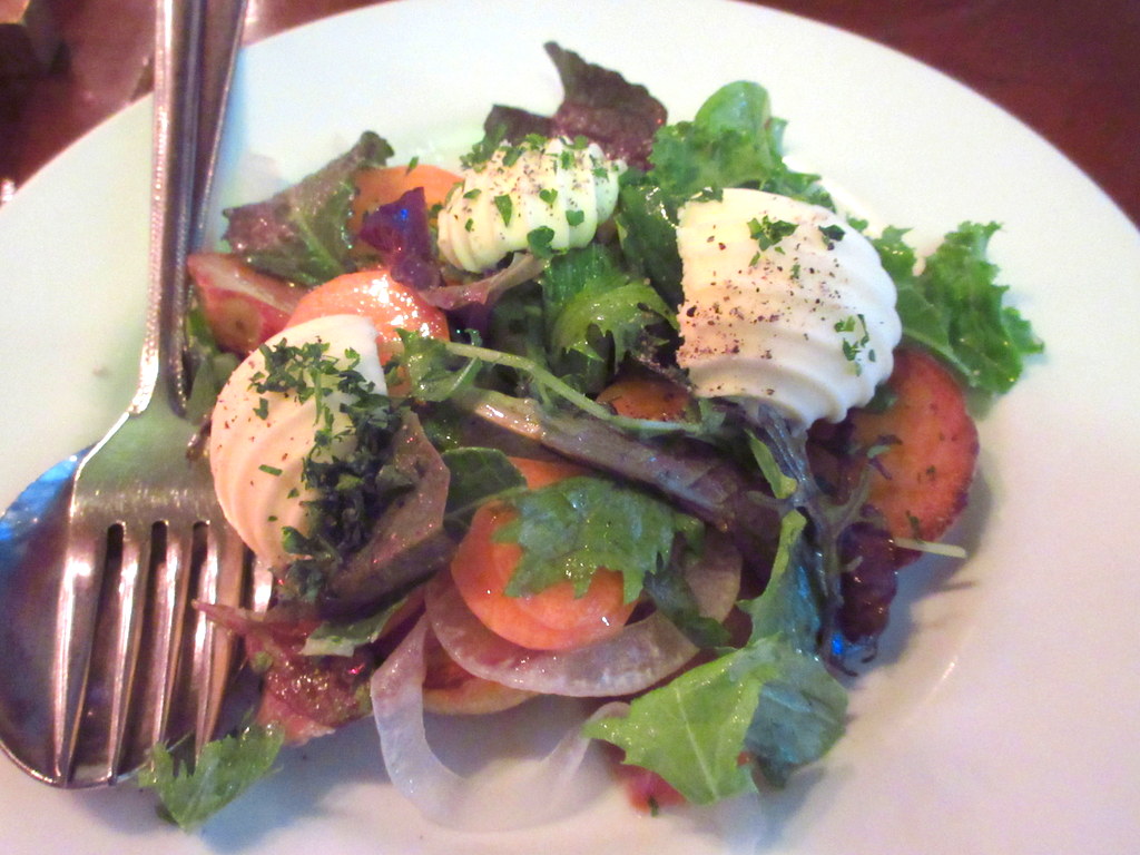 これは半熟のゆで卵にオーロラソースがかかったものなのですが、卵はプリっとしていて予想以上の美味しさ!