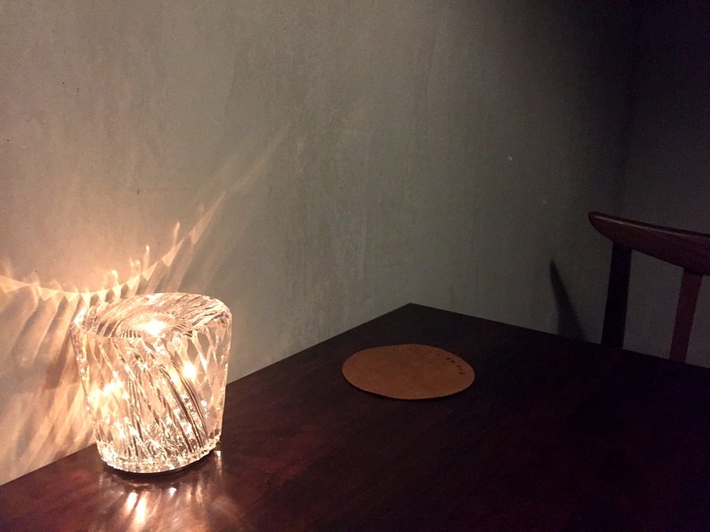 テーブルに灯されたキャンドルが、ロマンチックです。