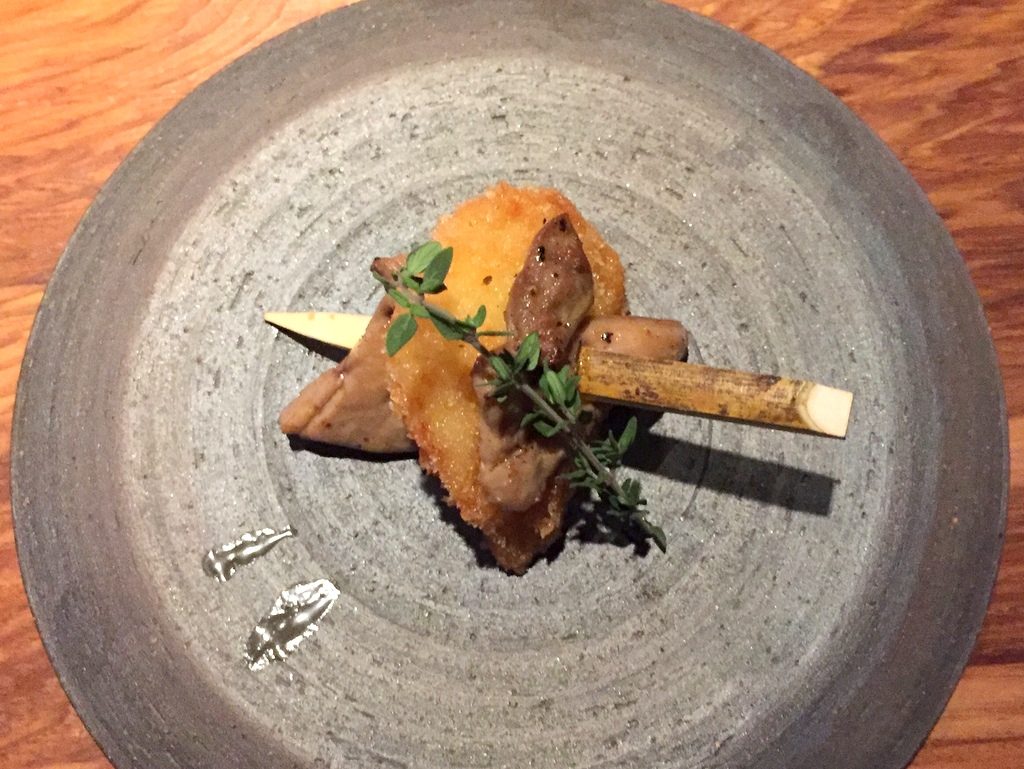 ・燻製ホタテとフォアグラの挟み揚げ