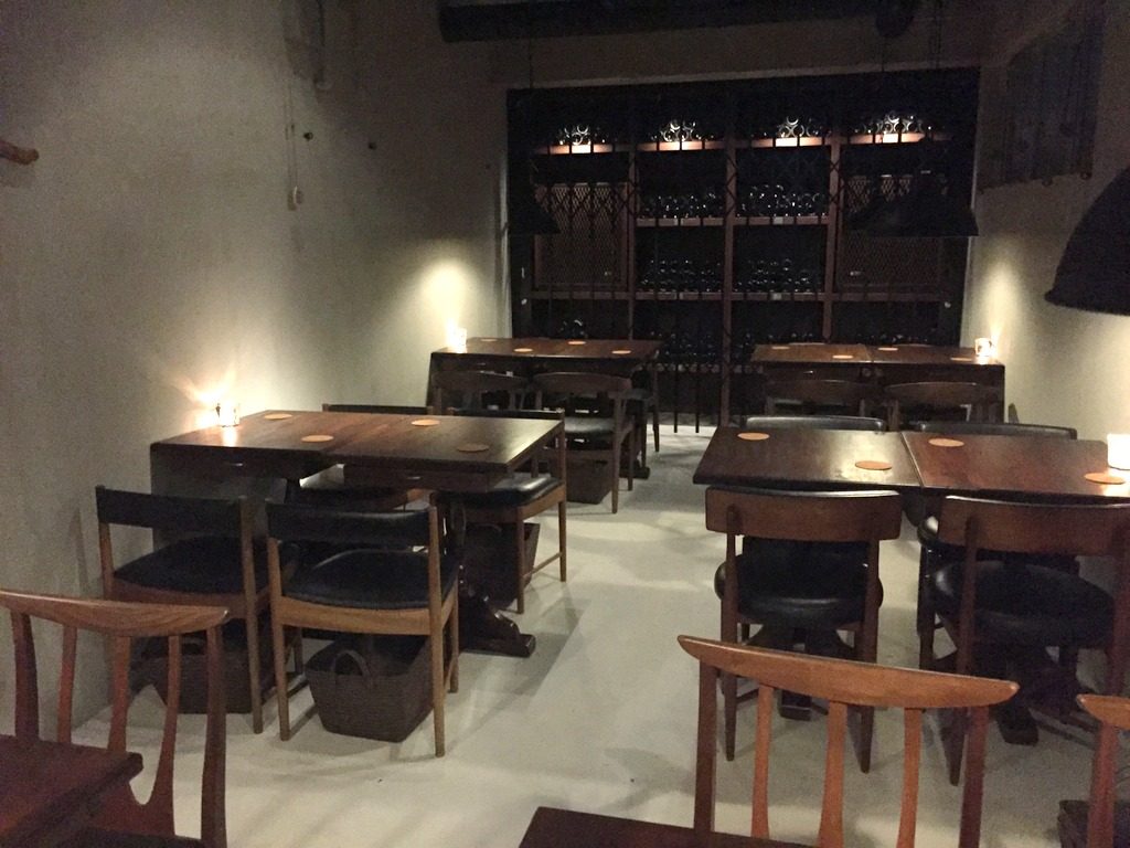 ワインの貯蔵庫をイメージした、コンクリートのシンプルで薄暗い内装に、