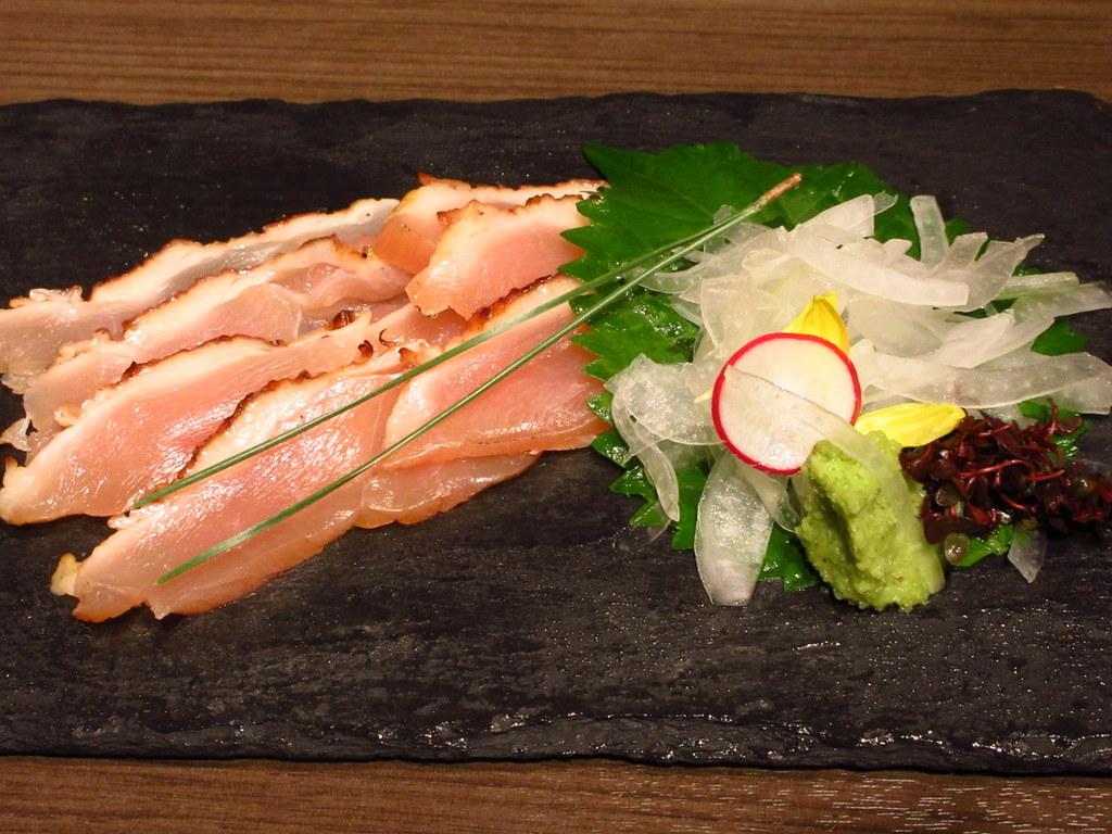 柔らかい肉質の胸肉のたたきは、塩とわさびでシンプルに いただきます!!
