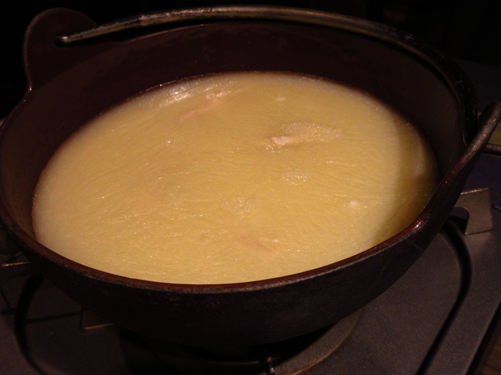 そしてこの店のメインである『鶏ガラスープ』をじっくりと逃した濃厚白濁 の水炊き!