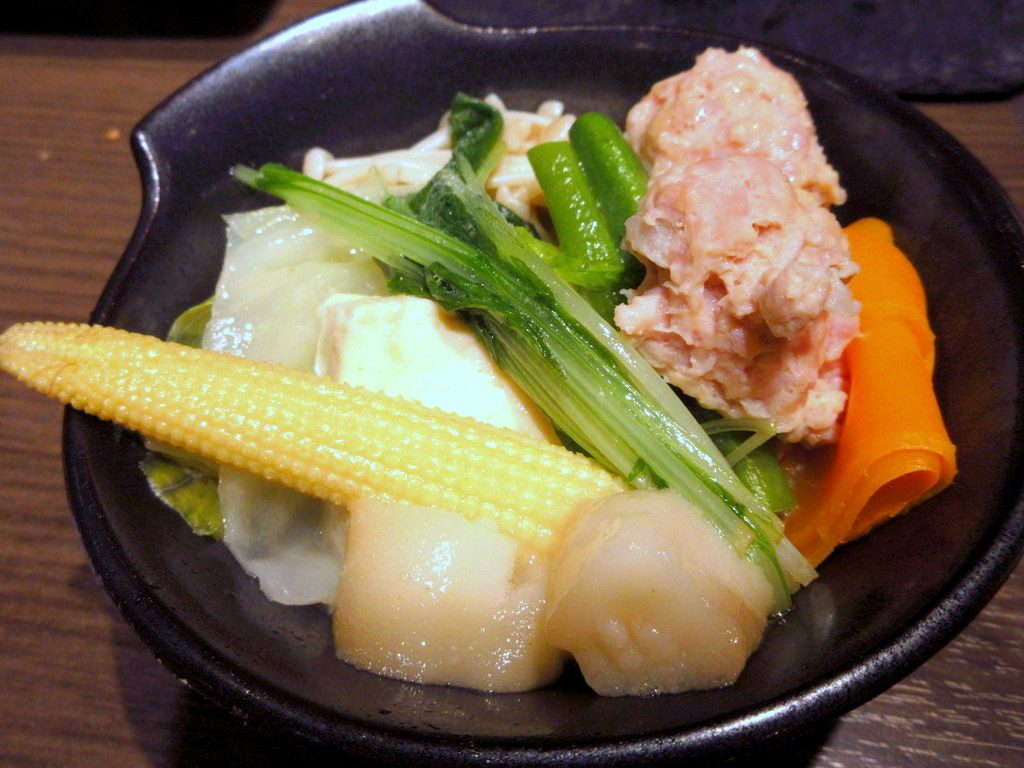 鶏肉、つみれ、ヤングコーン、豆腐、人参、水菜などの色々な具材をたっぷり入れてコトコト炊いていきます!
