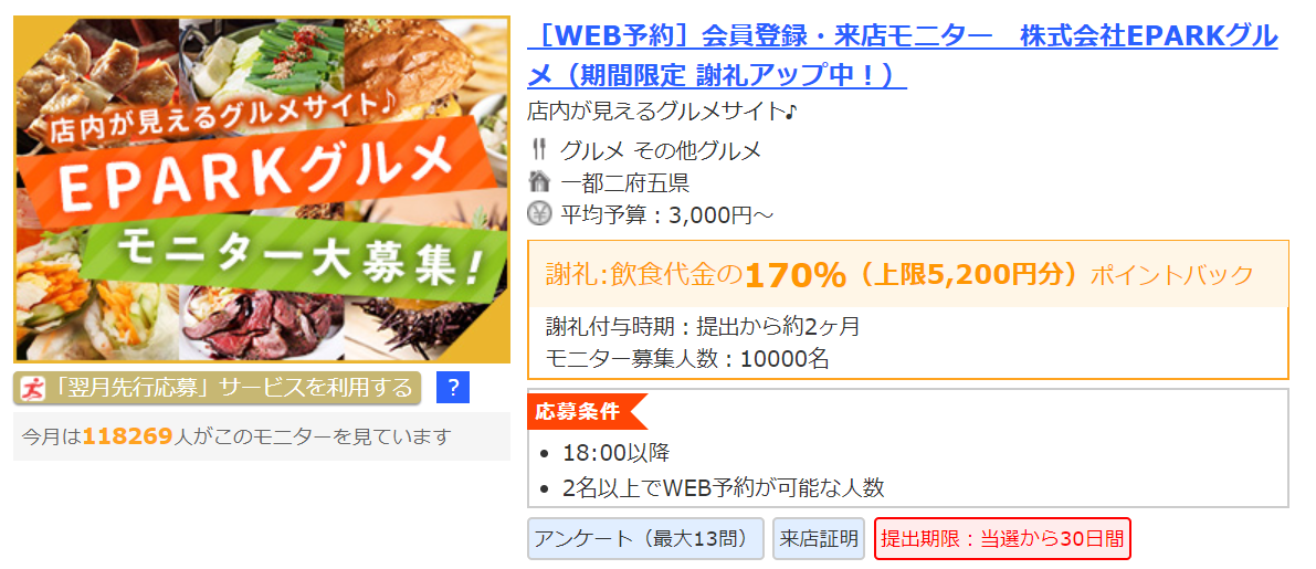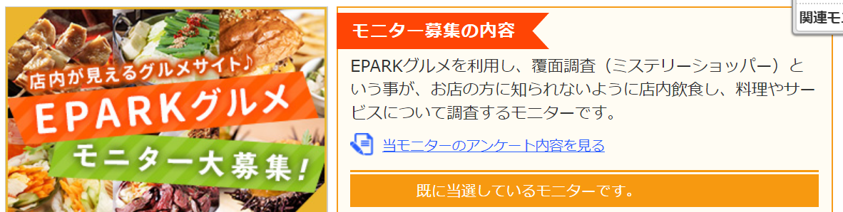 キャンペーンという形で現れるイーパークのグルメモニター。
