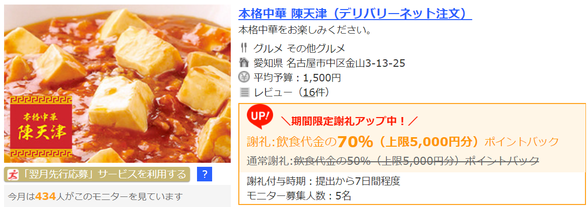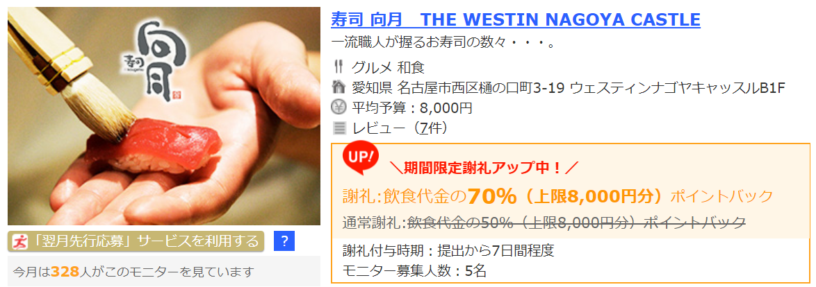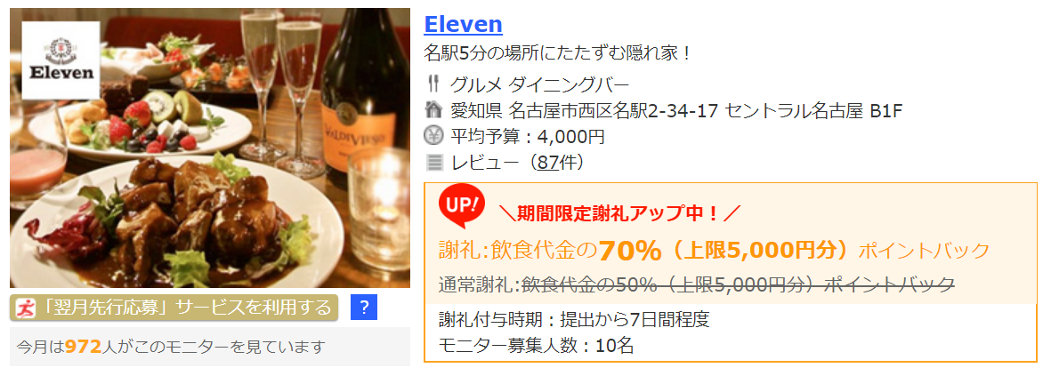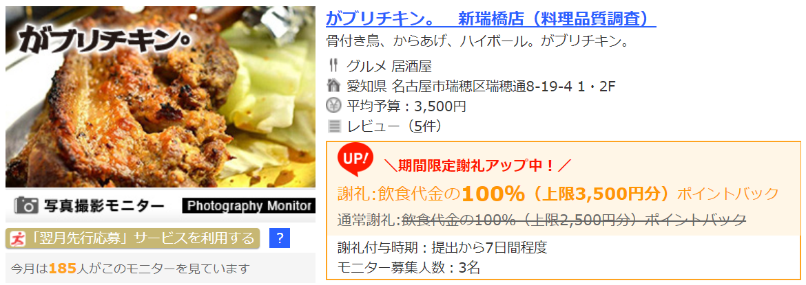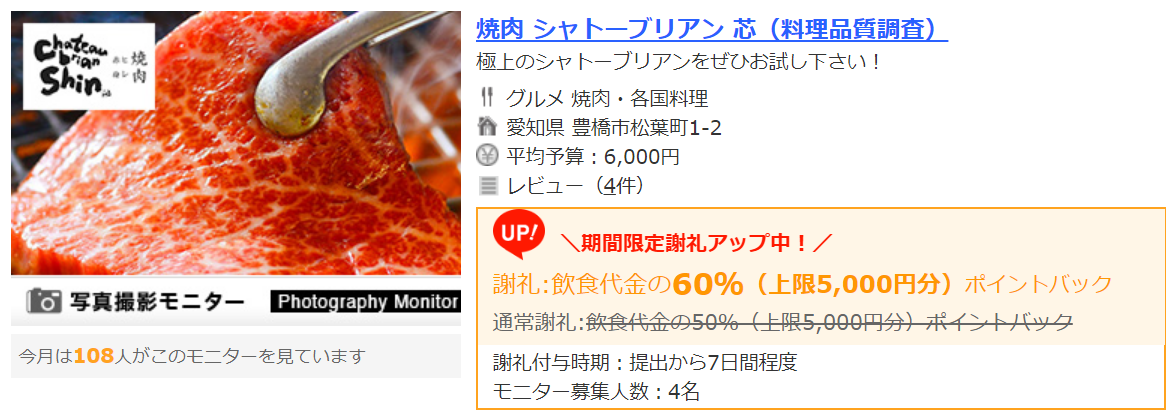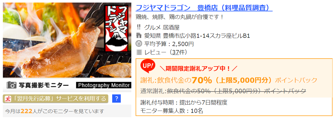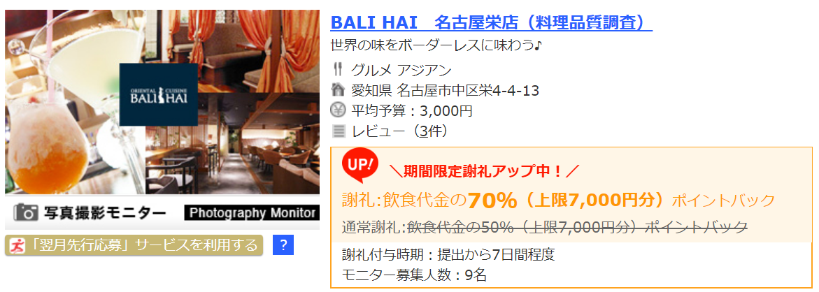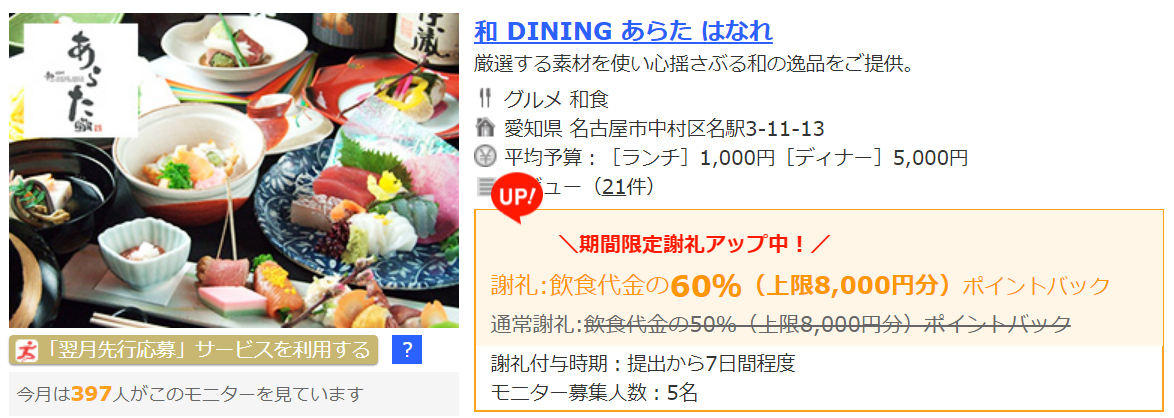これは本当に私は名古屋にいるのであれば、一番利用したいグルメモニター案件です!