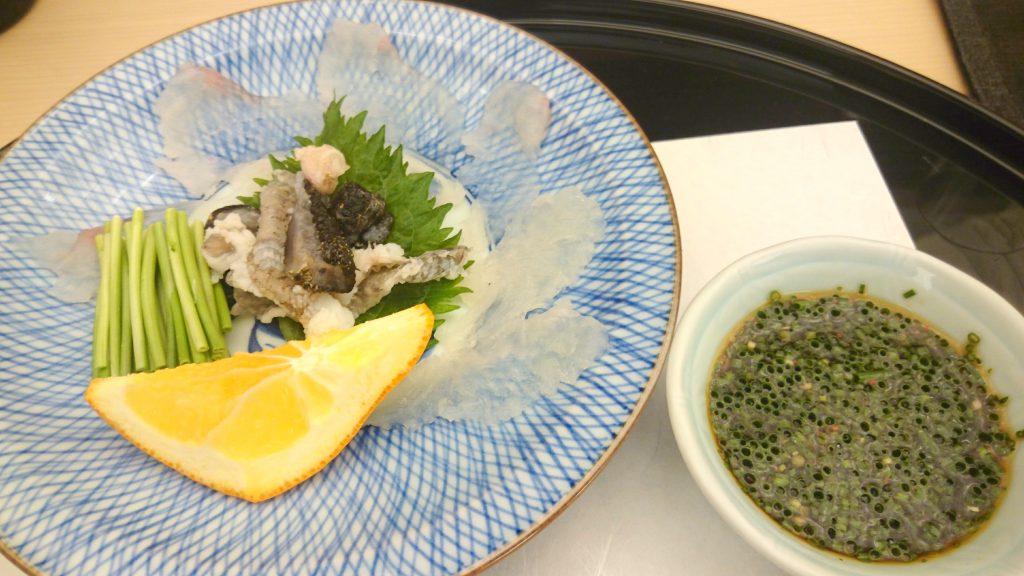 これは、ふぐ・・・とおもいきや、ハゼというお魚の薄造り。