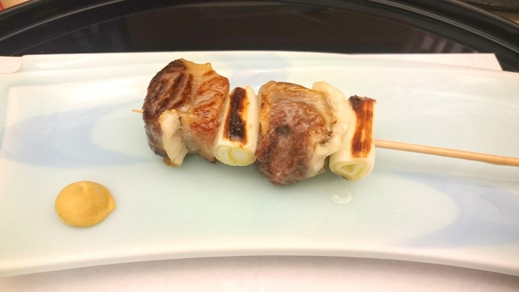 「ねぎま」。ねぎとマグロなのですが、脂身のある部位を使っているので、