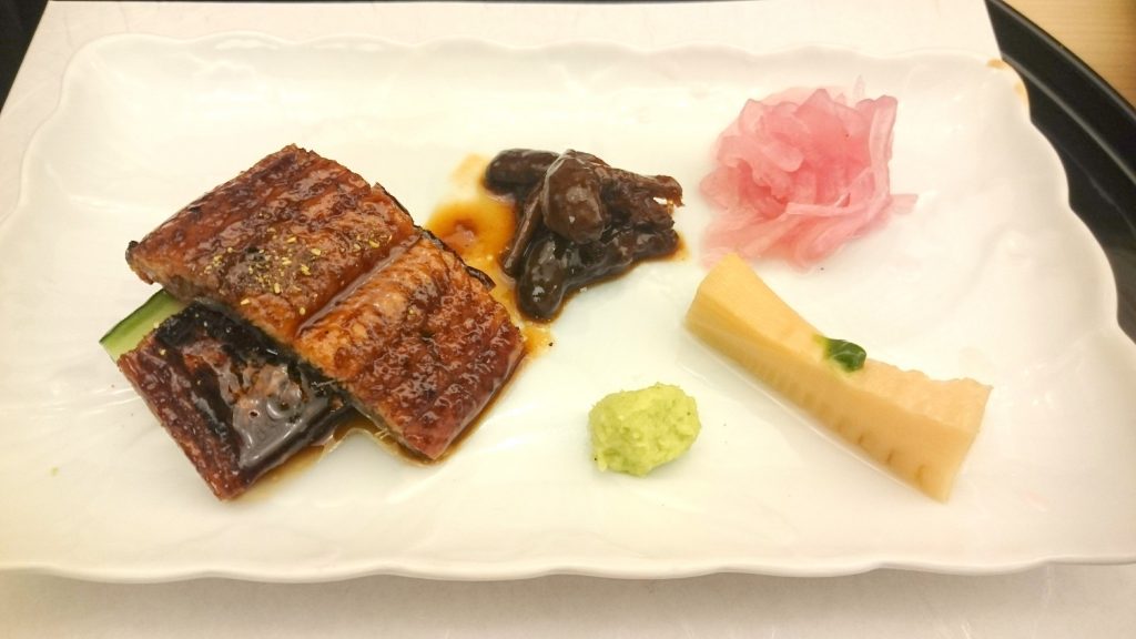 うなぎの蒲焼き。山椒ふんわりです。うなぎの心臓もついていました。